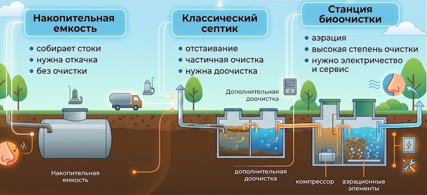 Как сравнивать производителей септиков без рекламных рейтингов: корпус, схема очистки, обслуживание, запчасти, сезонное проживание и стоимость владения.